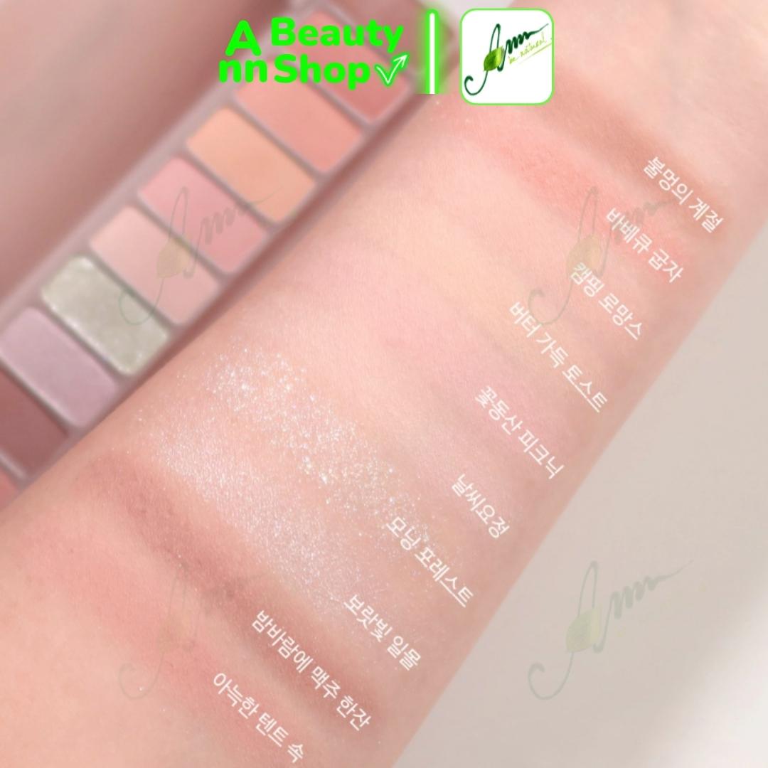 - Bảng phấn mắt gồm 10 tông màu nhẹ nhàng chứa đựng sự xanh tươi và tươi mát trong khu rừng ban mai tràn ngập ánh nắng.