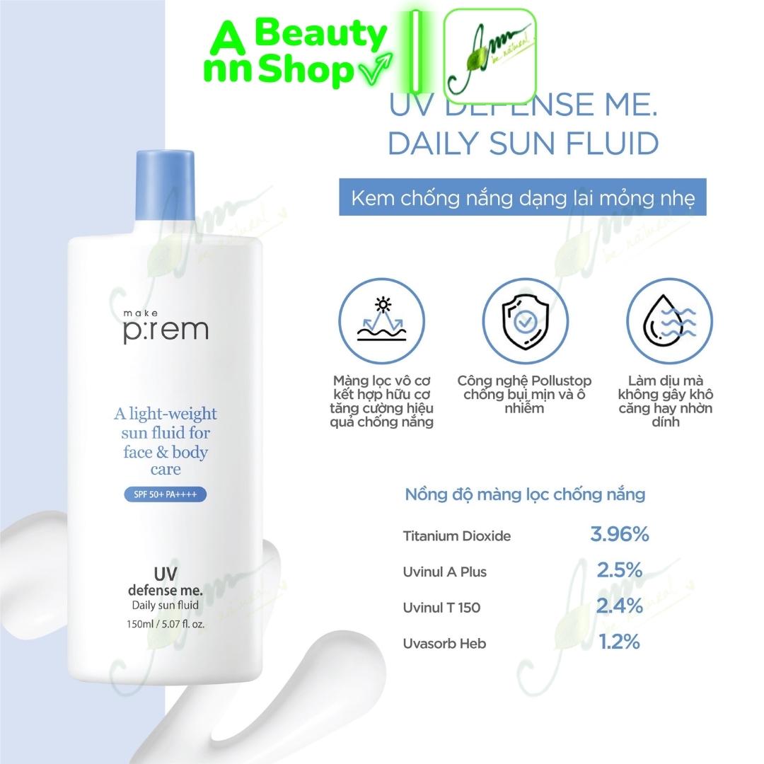 Kem Chống Nắng Dạng Lai Make Prem UV defense me. Daily sun fluid 150ml (bản mới upgrade) SPF50+ PA++++