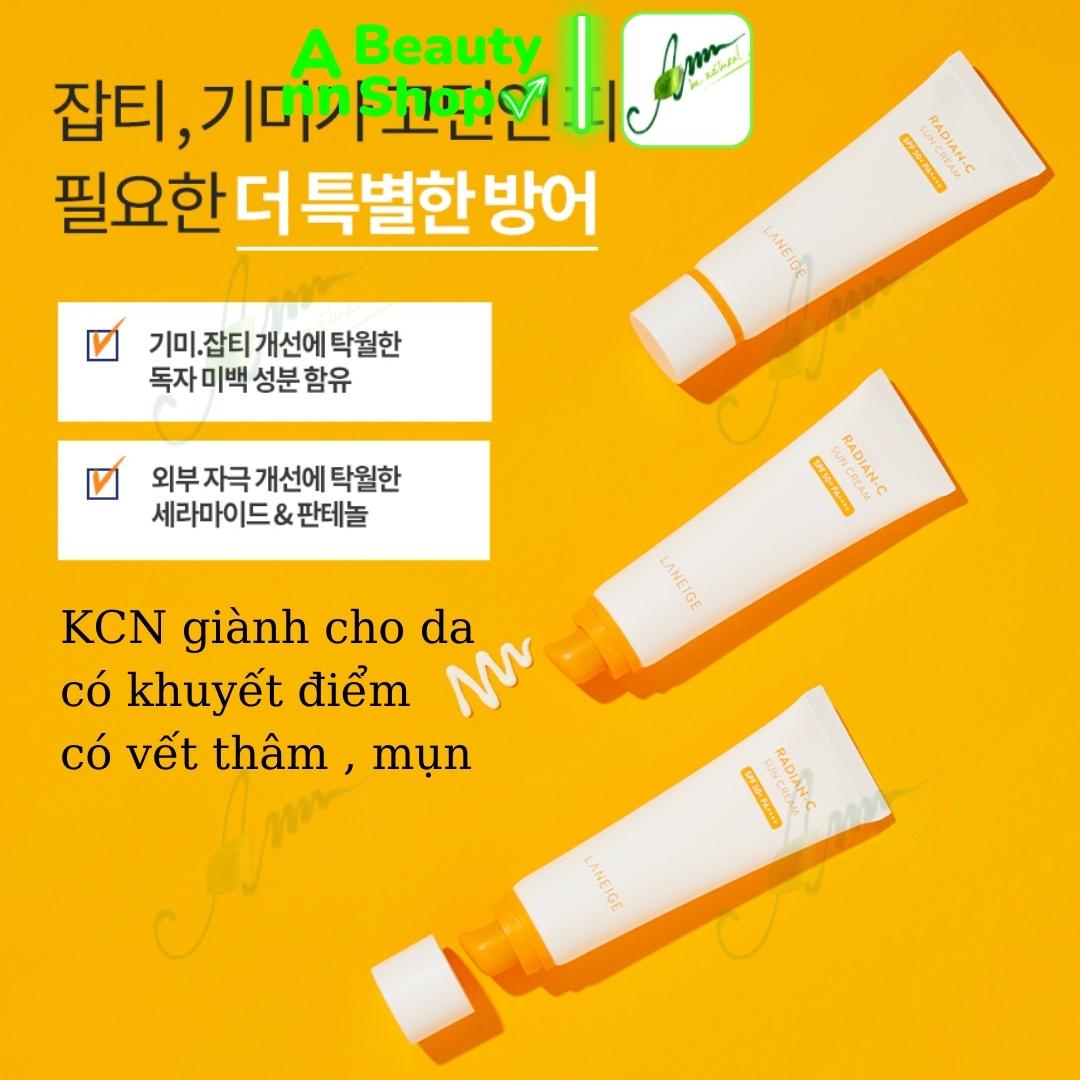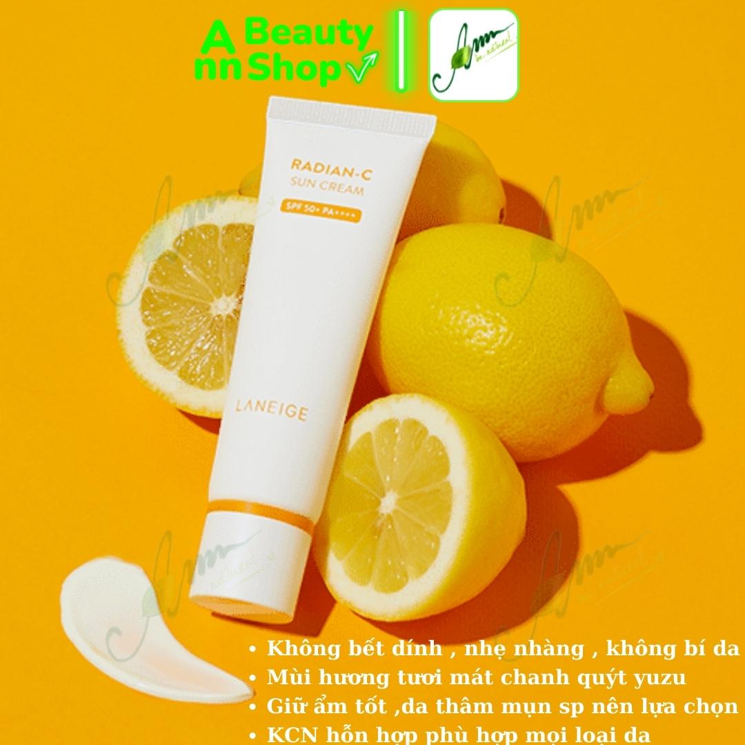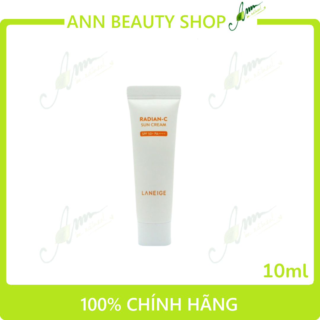 - Kem chống nắng dưỡng ẩm Laneige Radian C Sun Cream SPF50+/PA++++ với kết cấu thoáng mát nhẹ, thẩm thấu nhanh, khi apply lên da giúp hạ nhiệt da nhanh chóng.