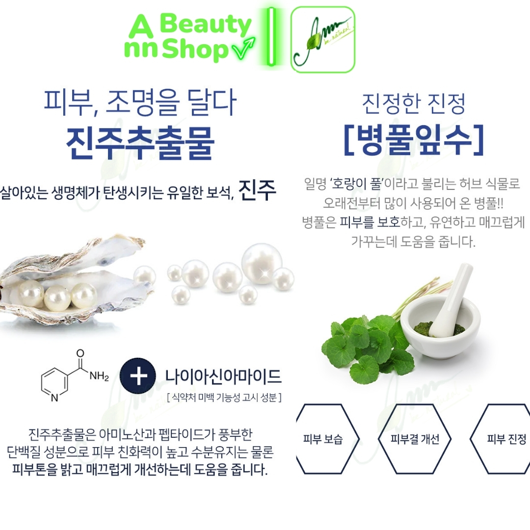 - NIACINAMIDE, ASCORBIC ACID, NGỌC TRAI: trắng sáng và mịn màng da