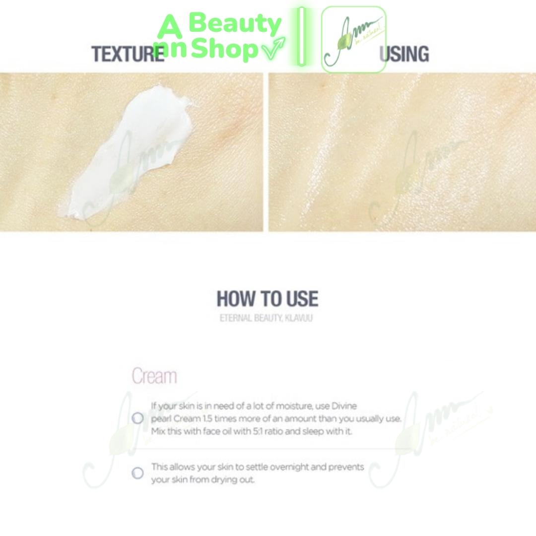 - Công dụng chính: Kem dưỡng sáng da Klavuu White Pearlsation với chiết xuất ngọc trai Hàn Quốc giúp làm sáng và cải thiện nếp nhăn, mang lại làn da căng mọng, tươi trẻ.