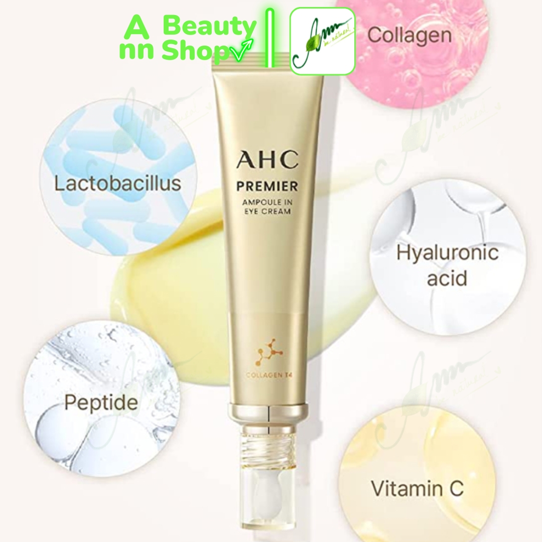 - Đồng thời, AHC Premier Ampoule In Eye Cream bổ sung gấp 10 lần các thành phần hoạt tính Peptide, Hyaluronic Acid (HA), Vitamin C, Niacinamide,…cải thiện tức thì 123% độ ẩm và 14% độ đàn hồi sau vài lần sử dụng