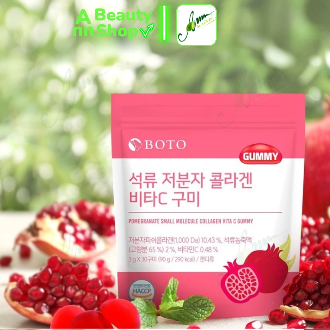 Kẹo Dẻo Vị Lựu Dưỡng Da Căng Bóng Sáng Mịn Boto Collagen Gummy Bịch 30 Viên. Lâu lâu hãng này mới sale nha mọi người. Ann mua trực tiếp từ hãng Boto có bill đầy đủ nên mọi người yên tâm nha, đồ ăn vô người càng phải kĩ hơn mỹ phẩm hơn nè