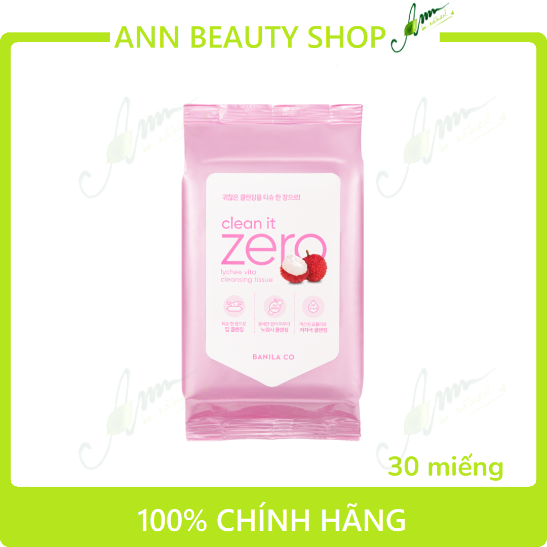 Khăn giấy tẩy trang BANILA CO Clean It Zero Lychee Vita Cleansing Tissue - 30 miếng