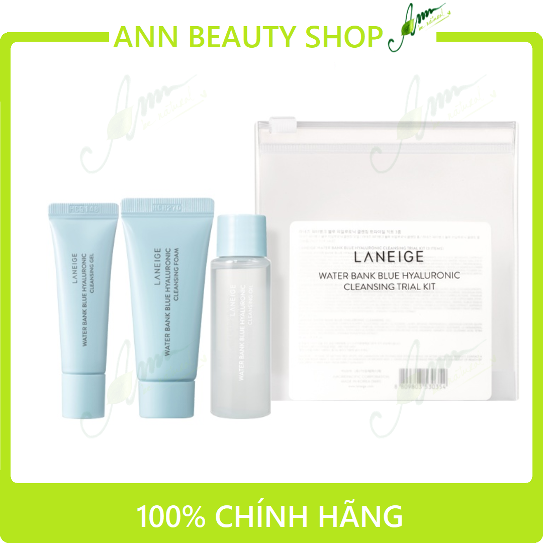 - Sữa Rửa Mặt Laneige Water Bank Blue Hyaluronic Cleansing Gel làm sạch với axit amin nhẹ, không gây dị ứng với công thức phân hủy sinh học 99,8% giúp loại bỏ chất thải từ lỗ chân lông và bổ sung độ ẩm.