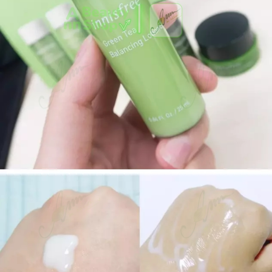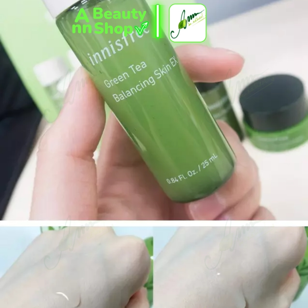 1. Nước cân bằng da (toner) Green Tea Balancing Skin EX 25ml – Công dụng giúp làm sạch da thêm một lần nữa, cân bằng độ pH trên da, giữ cho mặt bạn luôn được ẩm mượt, láng mịn tự nhiên. Sản phẩm dùng sau bước làm sạch (rửa mặt với sữa rửa mặt)