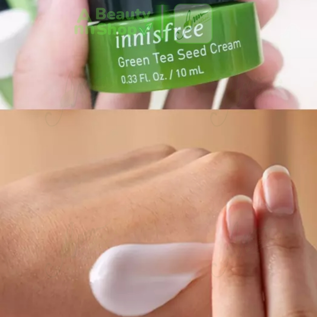 4. Kem dưỡng da Green Tea Seed Cream 10ml – chất kem khá mỏng và nhẹ, khả năng thẩm thấu cực tốt và hoàn toàn không gây bết dính.