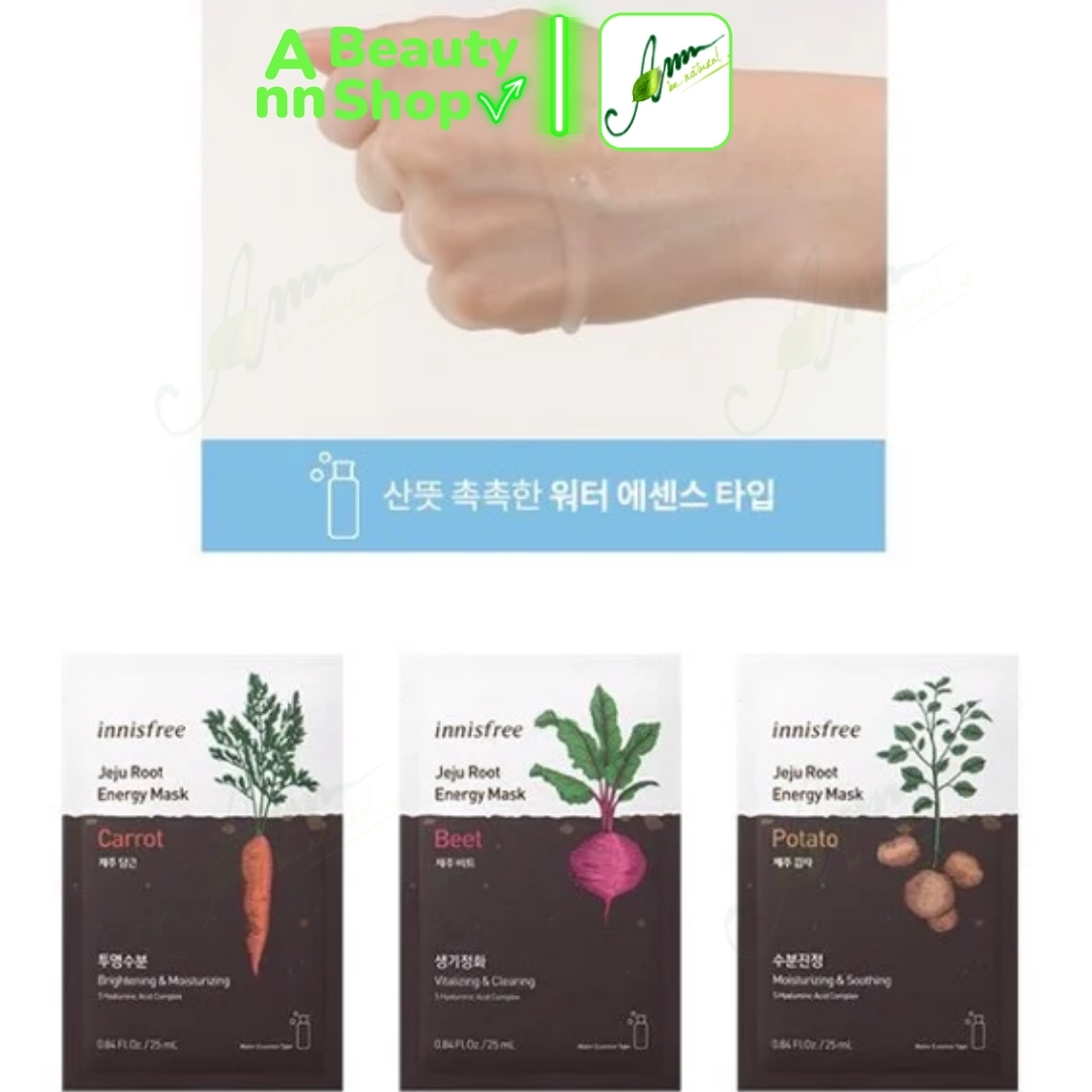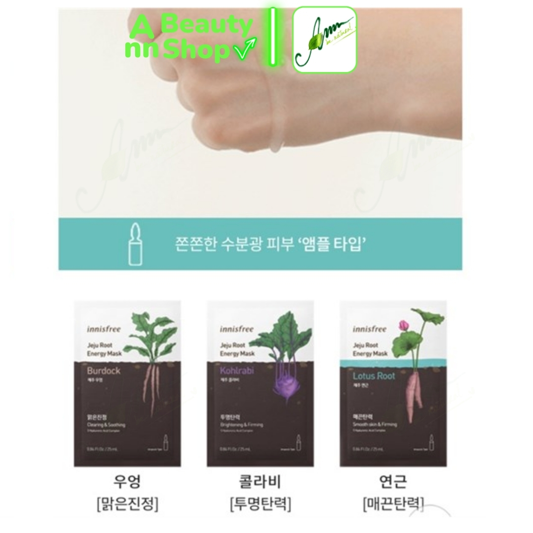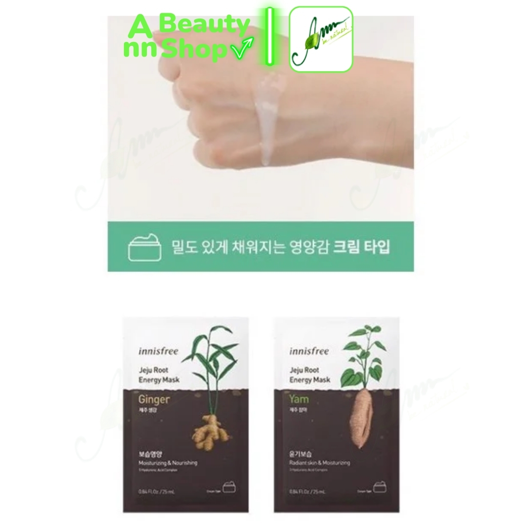 Mặt nạ Innis-free Jeju Root Energy Mask được chiết xuất từ các loại củ rễ giàu dưỡng chất, dưỡng chất và cấp ẩm từ sâu bên trong da, làm sáng và đều màu da.