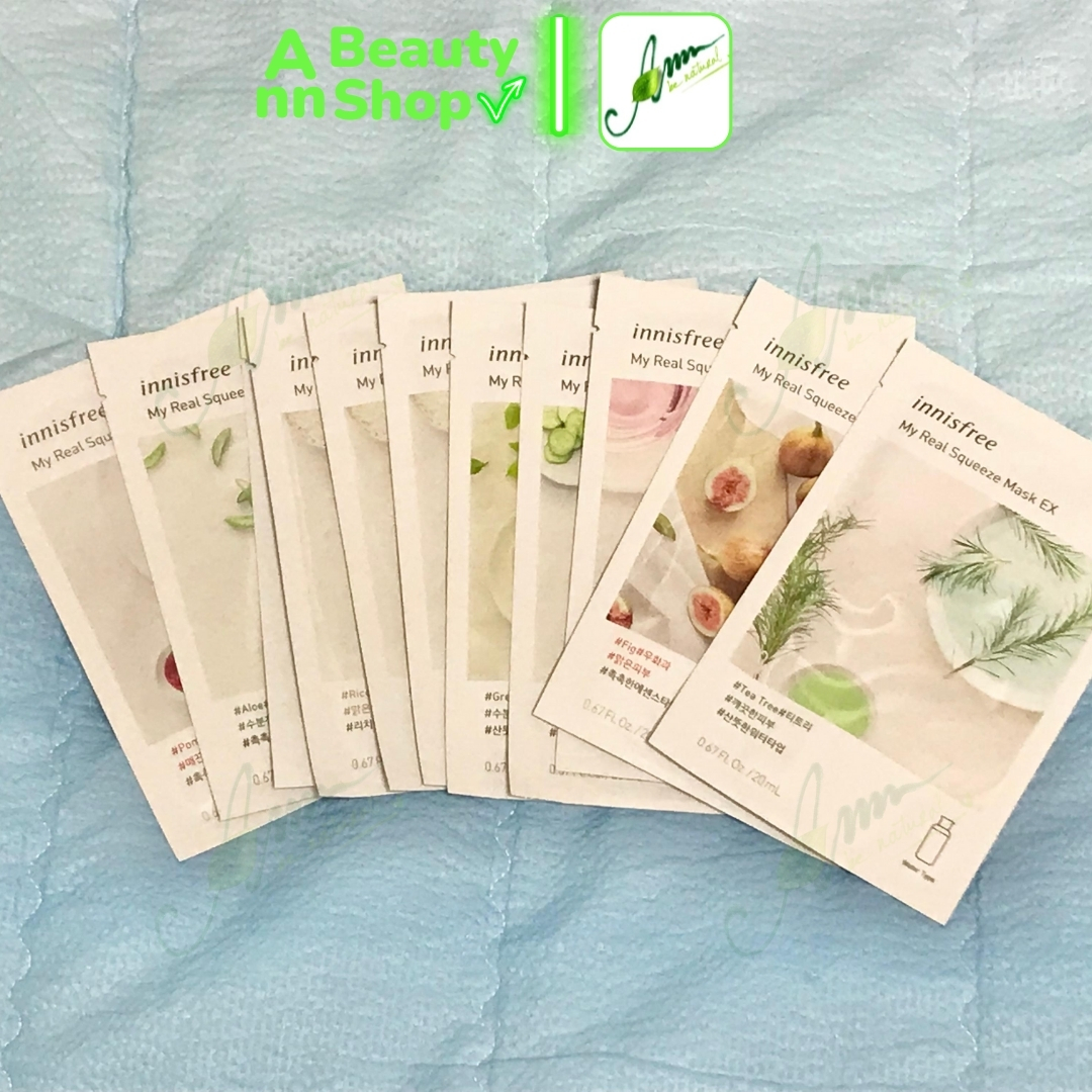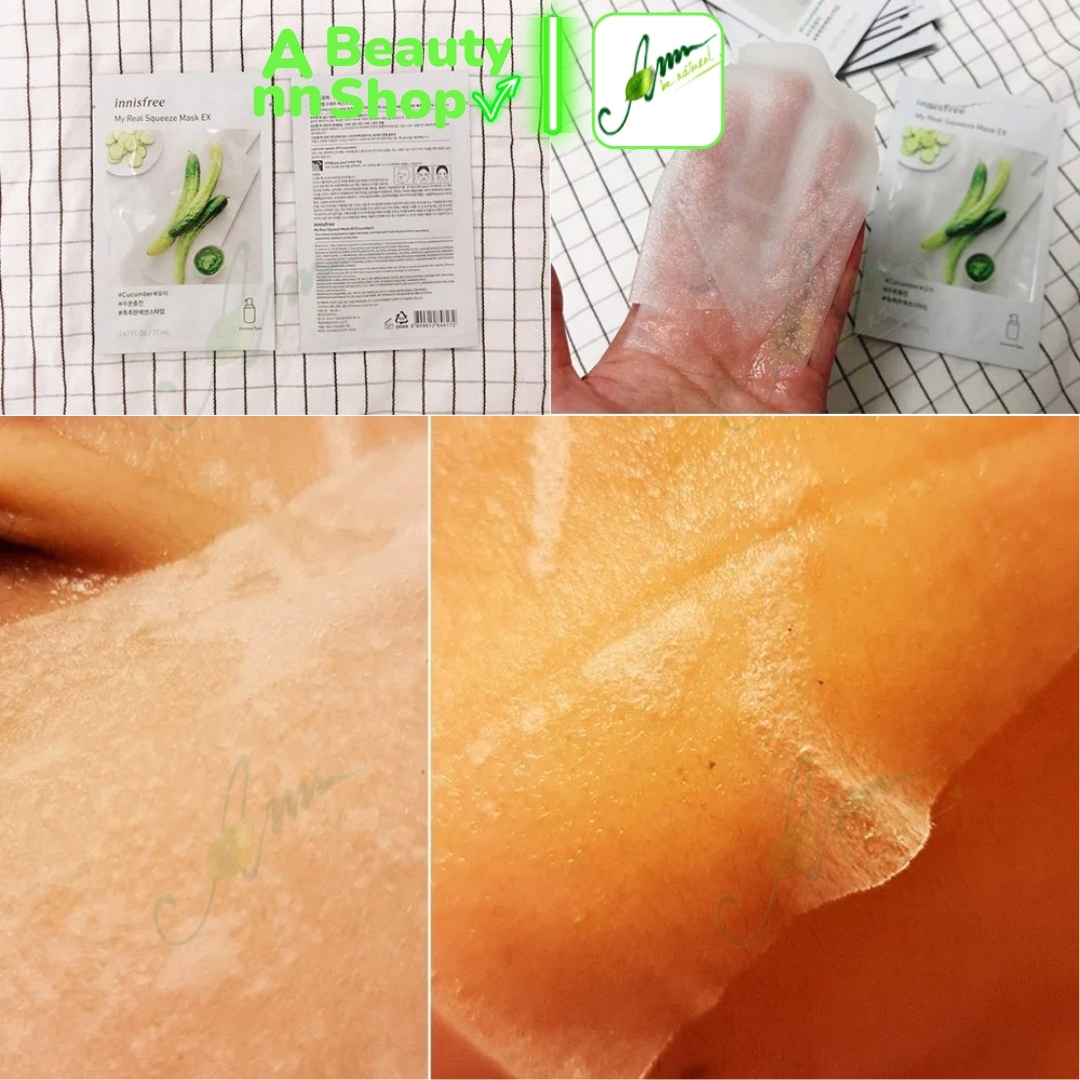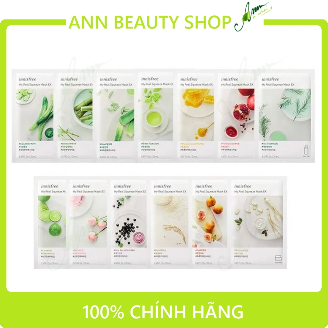 - Có nhiều loại để lựa chọn. Khi để ý trên bao bì mặt nạ Innisfree My Real Squeeze Mask sẽ thấy 3 kí hiệu có hình giống lọ kem, nước hoa hồng hoặc essence ám chị độ đậm đặc của dưỡng chất. Dù bạn không hiểu tiếng Hàn nhưng dựa vào những kí hiệu này giúp bạn lựa chọn ra tinh chất dưỡng phù hợp với tình trạng da của mỗi người.