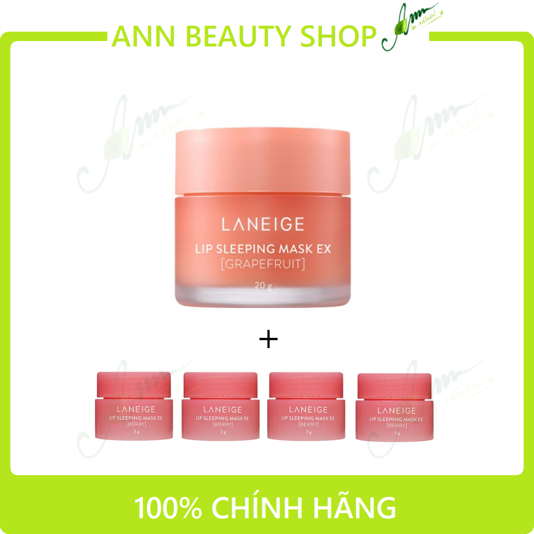 Mặt nạ ngủ môi Laneige 20gr (chọn mùi) + 4 mặt nạ ngủ môi minisize Laneige 3gr (berry). Set này tính ra siêu hời luôn ạ. Date xa
