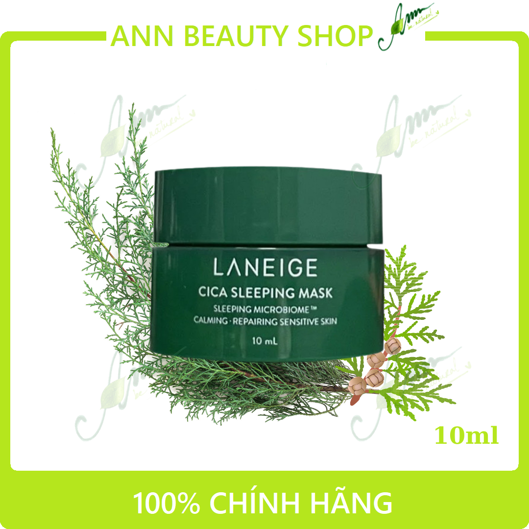 - Laneige Cica Sleeping Mask với thành phần chính chiết xuất từ nấm men rừng tăng khả năng tái tạo lớp màng ẩm và khả năng làm dịu da cao hơn 111,9% so với thành phần Madecassoside.