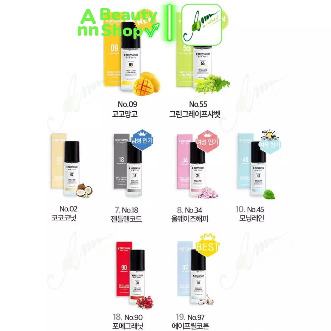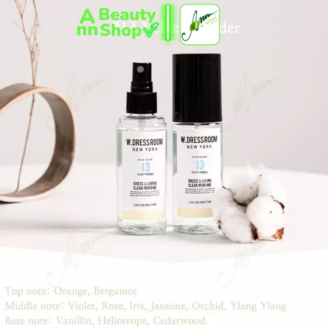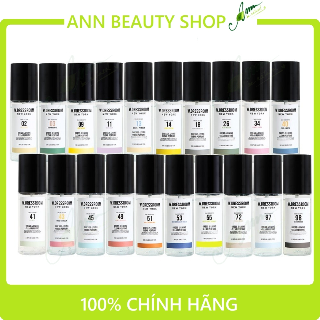 Nước hoa W. Dressroom là một thương hiệu khá đình đám và quen thuộc với giới trẻ Hàn Quốc thời gian gần đây. Với hương thơm tự nhiên, dịu mát của cỏ cây hoa lá chắc chắn sẽ làm cho không gian phòng, không gian xe hơi hay quần áo của bạn tỏa hương thơm dịu tự nhiên bốn mùa. Sản phẩm hiện đang rất được ưa chuộng tại Hàn Quốc cũng như thu hút không ít sự quan tâm của các bạn trẻ Việt Nam.