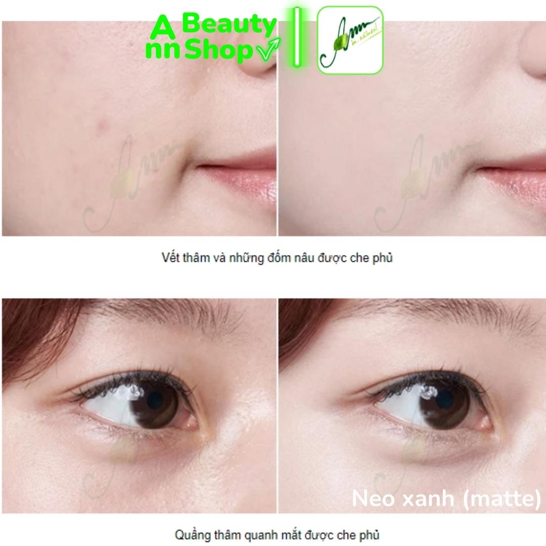 1/ NEO DOT XANH (MATTE): Che phủ tốt, chất lì khô ráo, dành cho mọi loại da, da thiên dầu.