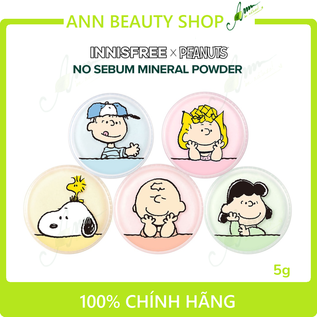 Phấn phủ phiên bản giới hạn Innisfree Peanuts - 5 màu 5 mùi hương mới nhé ạ. Đây là phiên bản đặc biệt và được sản xuất giới hạn ạ