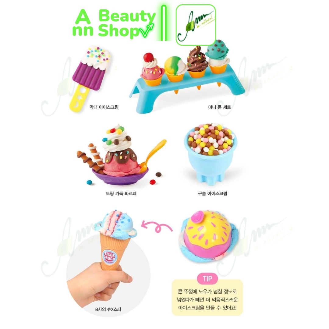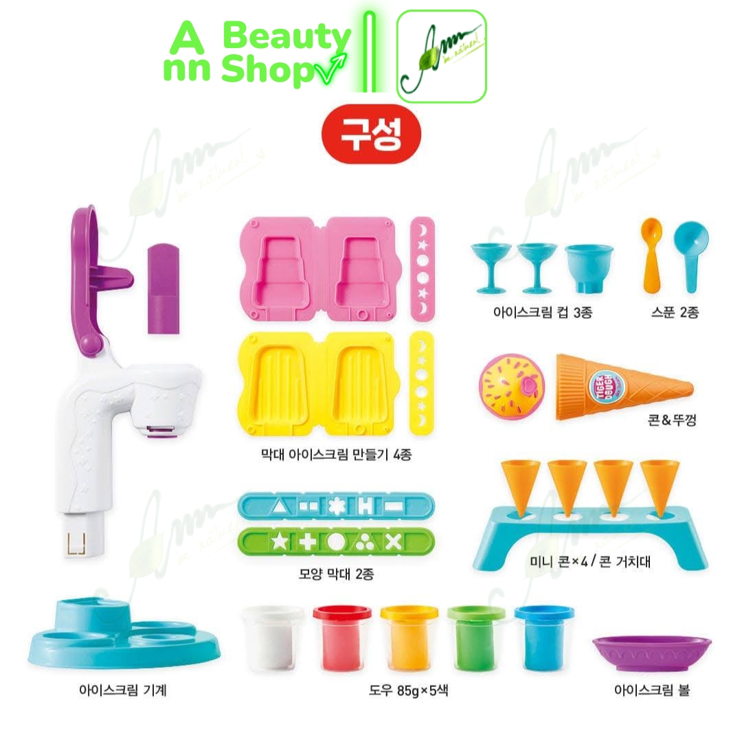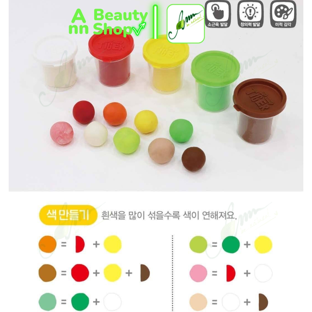 - 1 set có 20 dụng cụ chi tiết làm kem + 5 màu cơ bản đất nặn: trắng, đỏ, vàng, nâu, xanh lá cây >> 5 màu này có thể mix tạo thành các màu mới nha các mom, có bảng hướng dẫn pha màu như shop up (trên hộp giấy cg có in ạ)