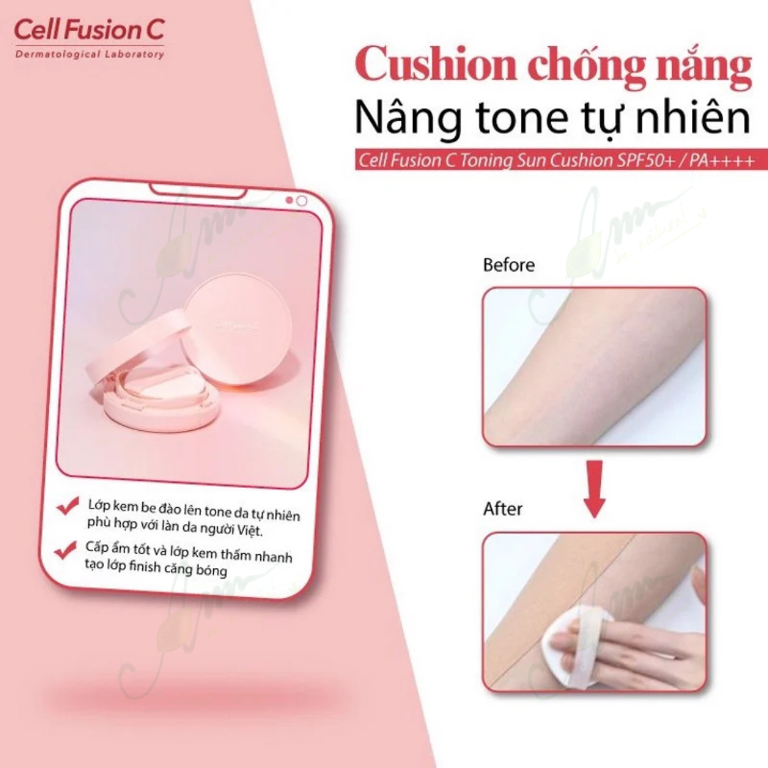 1/ CELL FUSION TONING SUN CUSHION 2in1 công dụng như kem chống nắng nâng tông nhưng phiên bản Phấn nước, tích hợp 1 bước chạm = makeup + chống nắng: