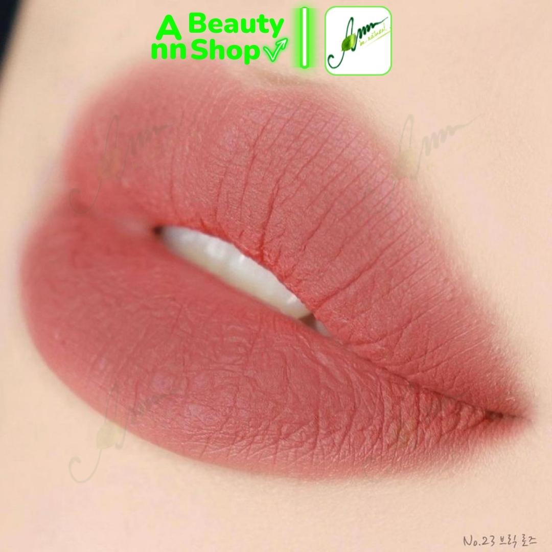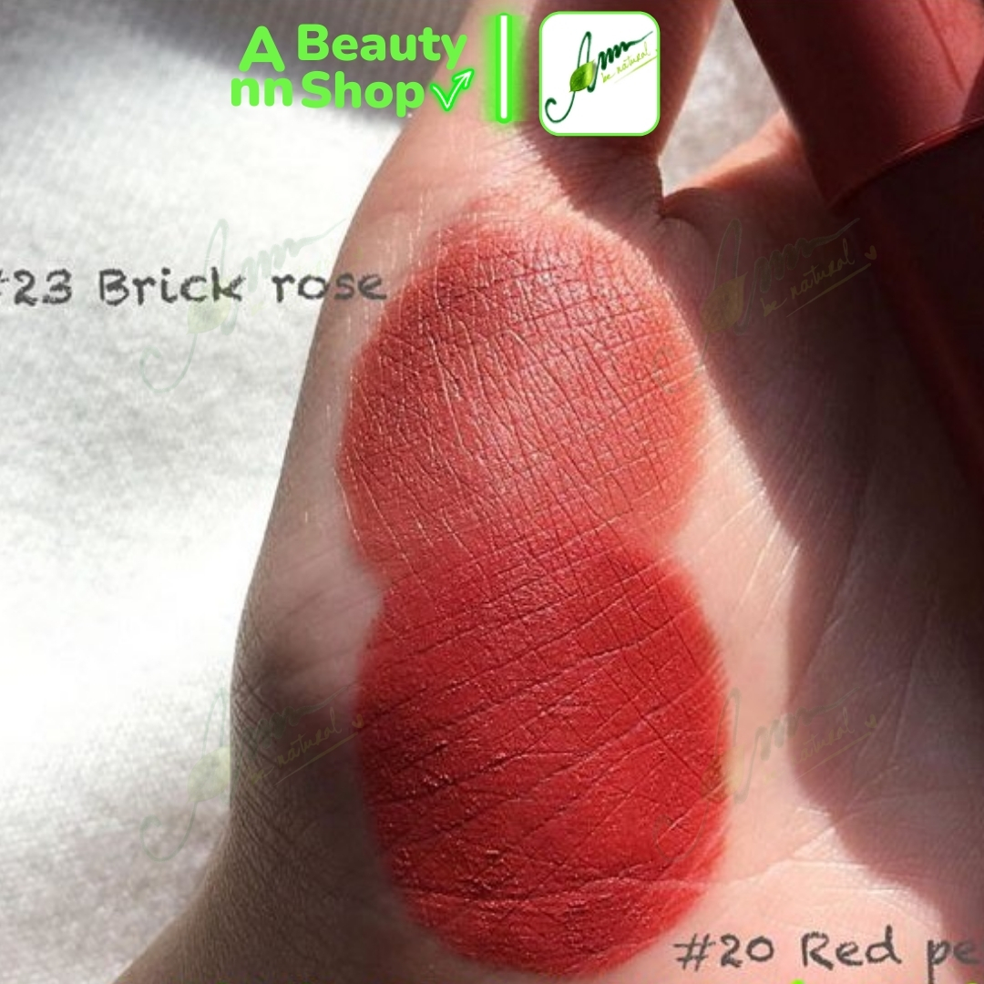 ► Màu 23 (Brick Rose) là một màu đỏ nâu trung tính, thực sự lạ mắt và dễ thương. Màu này hợp với các cô gái đi học, đi làm, cũng như các cô nàng đang tìm cho mình một sự nữ tính nhất định trong cách trang điểm. Dù bạn ở tông da nào, sáng hay ngăm, da tông lạnh hay tông nóng, đánh màu son này lên vẫn rất xinh, làm sáng da và răng lên rất rõ. Màu son thiên về tông trầm rất phù hợp cho cô nàng có làn da trung bình - ngăm, khi thoa lên rất hợp tông môi lại hài hòa với làn da nữa.