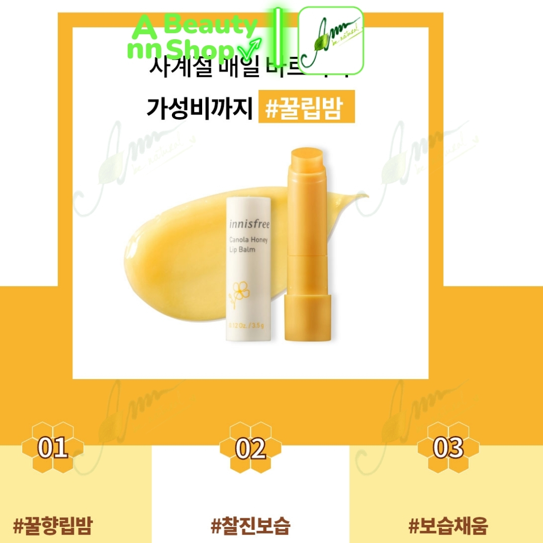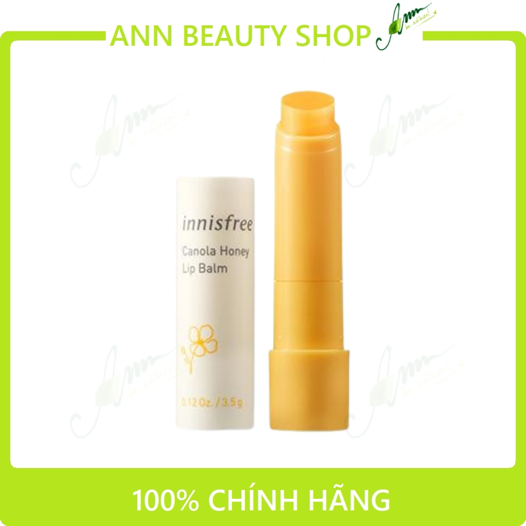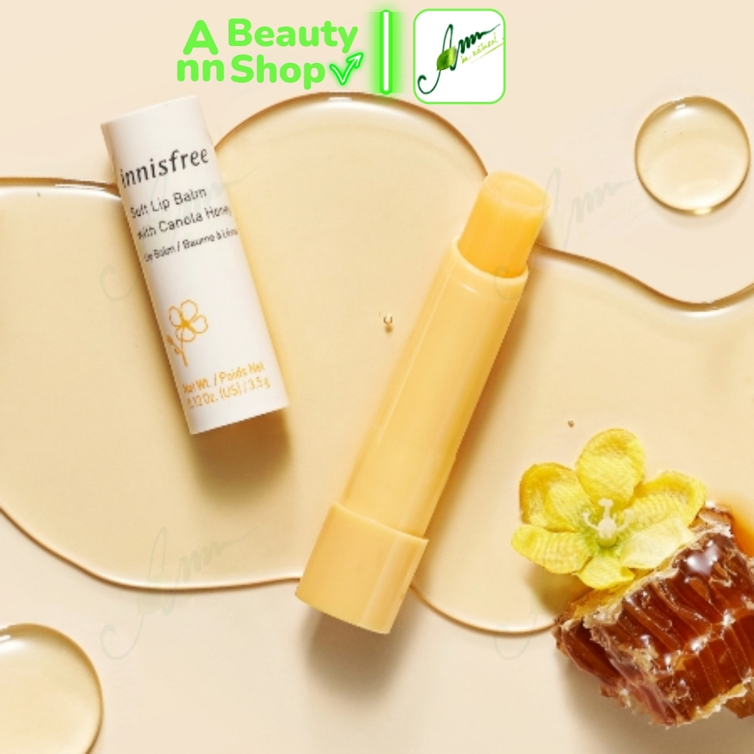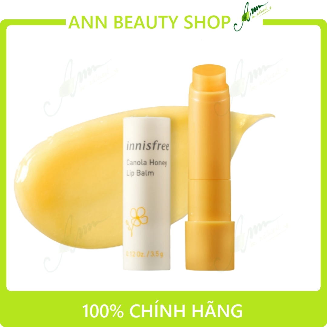 - Innisfree Canola Honey là son dưỡng môi không màu chiết xuất từ mật ong và tinh dầu hoa cải từ thiên nhiên đảo Jeju giúp dưỡng ẩm cung cấp nước mang đến một đôi môi mịn màng, căng mọng suốt cả ngày.