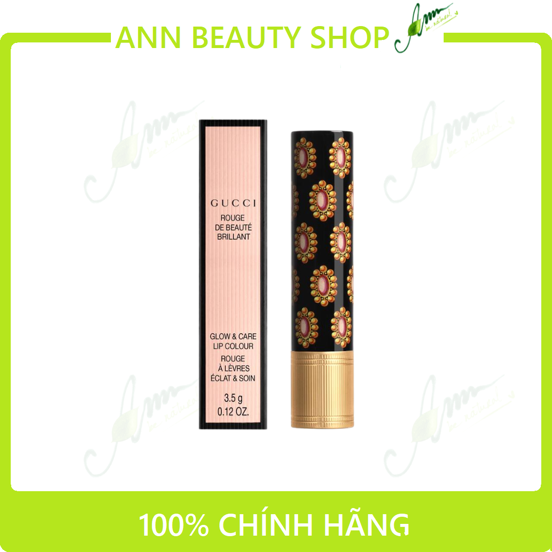 - Mang lại độ ẩm suốt 24 giờ và sắc tố bóng đẹp trong 4h đồng hồ. Bên cạnh đó, son Gucci Rouge de Beauté Brillant Glow được làm từ những thành phần thuần chay đặc biệt. Nhận được “cơn mưa” lời khen từ những tín đồ phái đẹp trên toàn thế giới