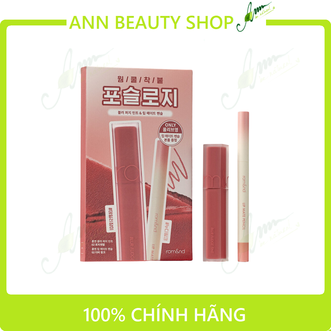Set Son kem lì Romand 02 + Chì kẻ viền môi Romand 02 sale Black Friday tại Oliveyoung