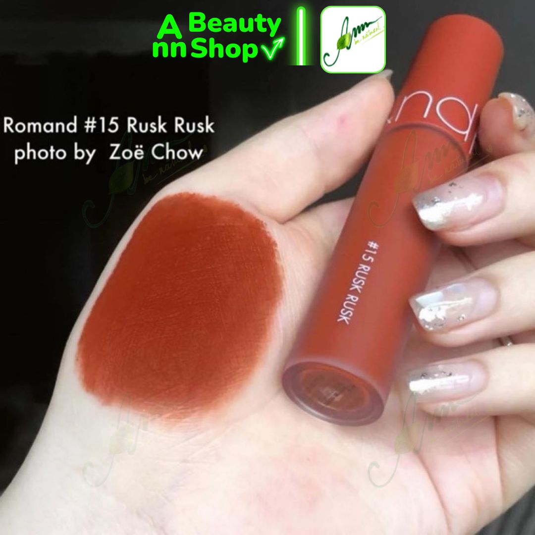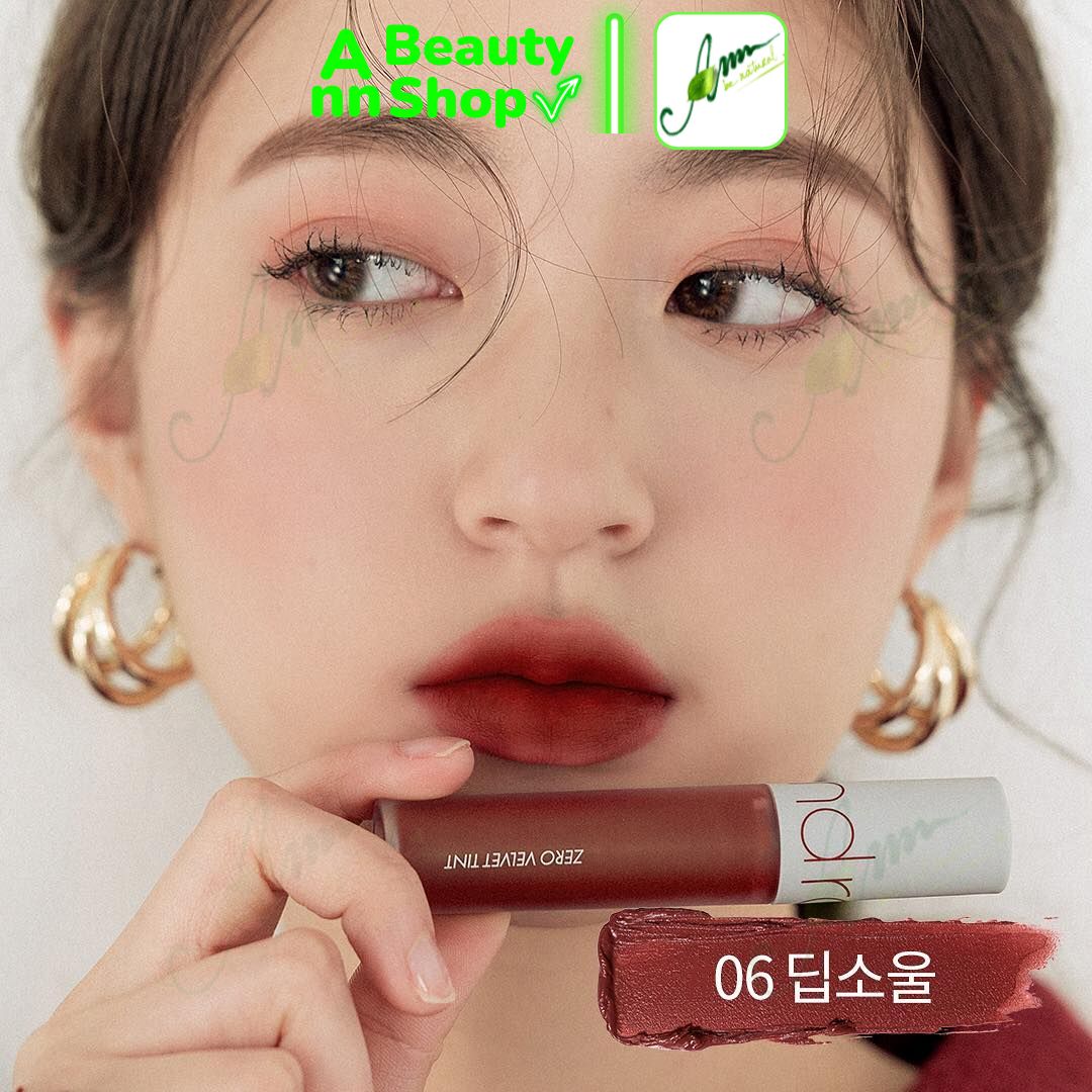 - Romand Zero Velvet Tint có thân hình trụ tròn, vỏ nhám lì dễ dàng phân biệt màu son bên trong, kích thước cầm vừa tay.