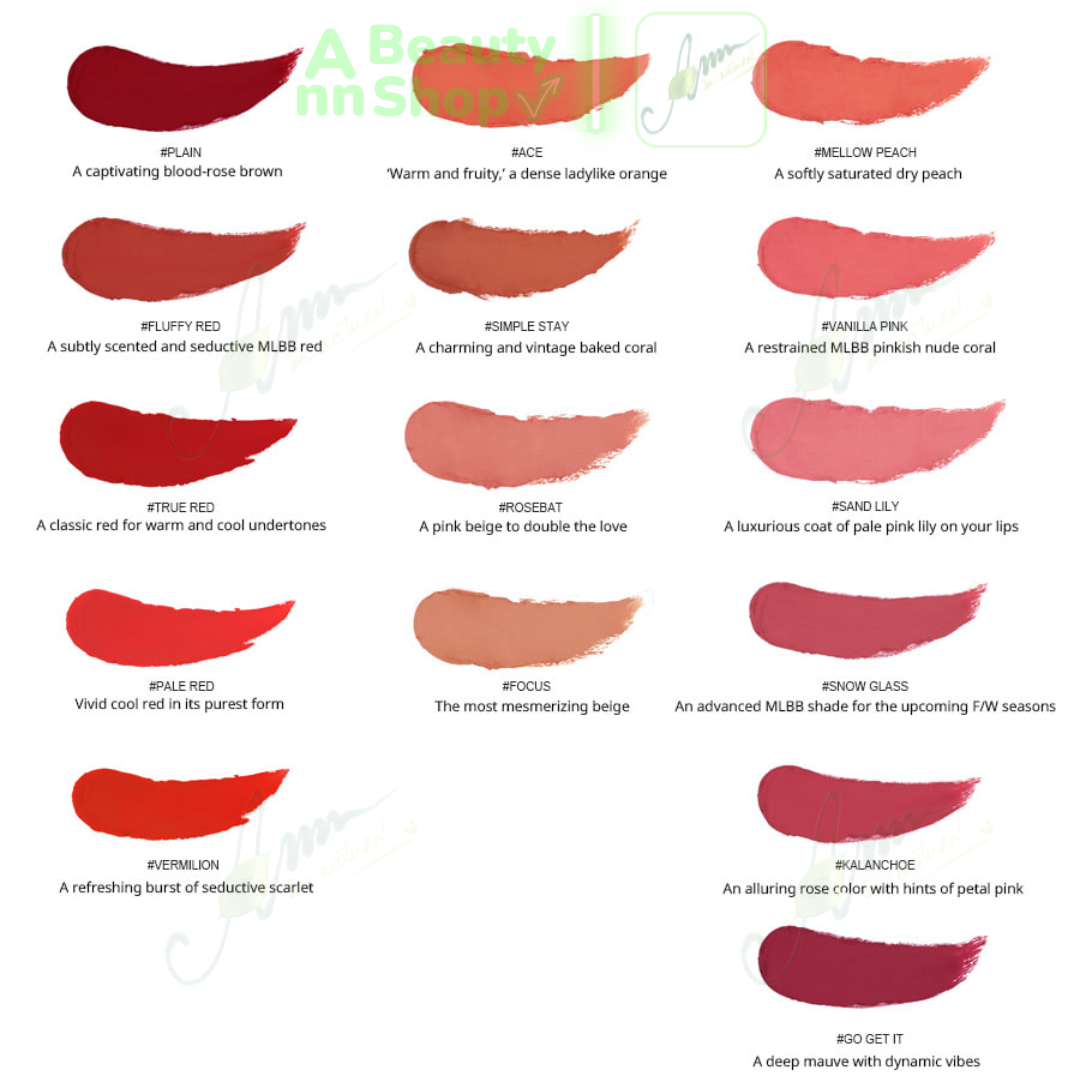 - Gồm 15 màu, nhưng đa phần đều xoay quanh tông nude tự nhiên, đúng chuẩn MLBB (My Lip But Bettter).