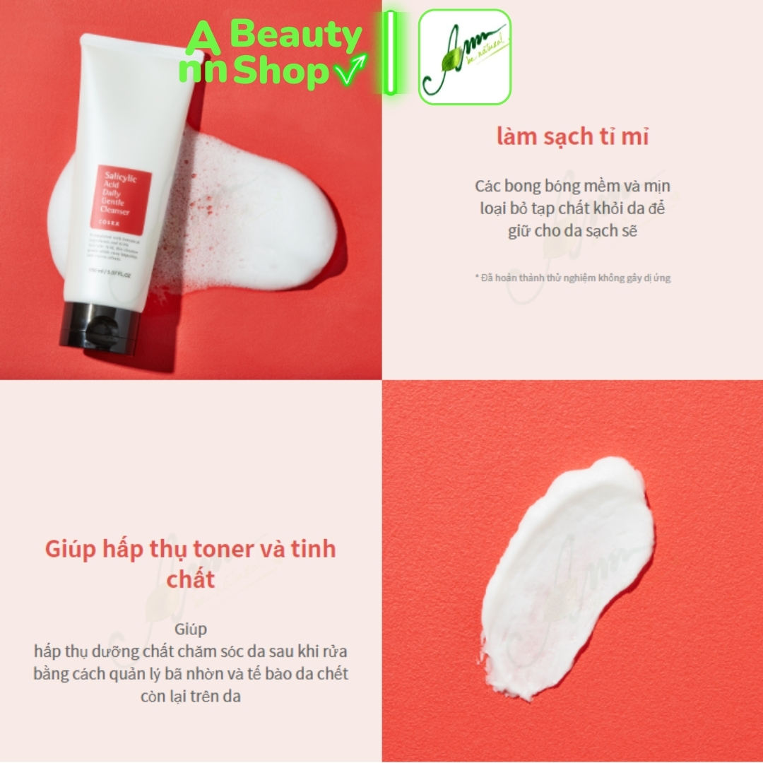 - Sữa Rửa Mặt Cosrx Salicylic Acid Daily Gentle Cleanser có phiên bản trước là Cosrx Salicylic Acid Exfoliating Cleanser, nhưng ở phiên bản này được cung cấp khả năng làm dịu da hơn phiên bản trước. Đây là phiên bản với nồng độ BHA thấp hơn (0,5%) nên cực kỳ thích hợp để dùng hàng ngày. Nồng độ của BHA trong sữa chỉ đủ để làm sạch sâu lỗ chân lông nên các nàng không cần phải lăn tăn nhé! Chính vì sự đổi mới này mà các bạn da mụn, da nhạy cảm, da kích ứng hoàn toàn có thể dễ dàng sử dụng hàng ngày.