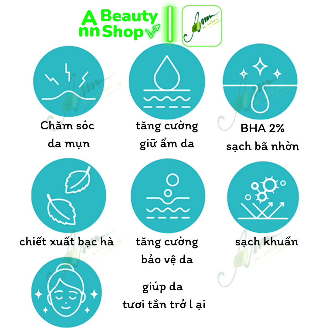 - Chiết xuất bạc hà và BHA có hàm lượng cao 2% giúp loại bỏ và kiểm soát bã nhờn, giữ cho làn da sach·mịn màng và loại bỏ các tế bào da chết, mang lại làn da sạch sẽ, trong trẻo.