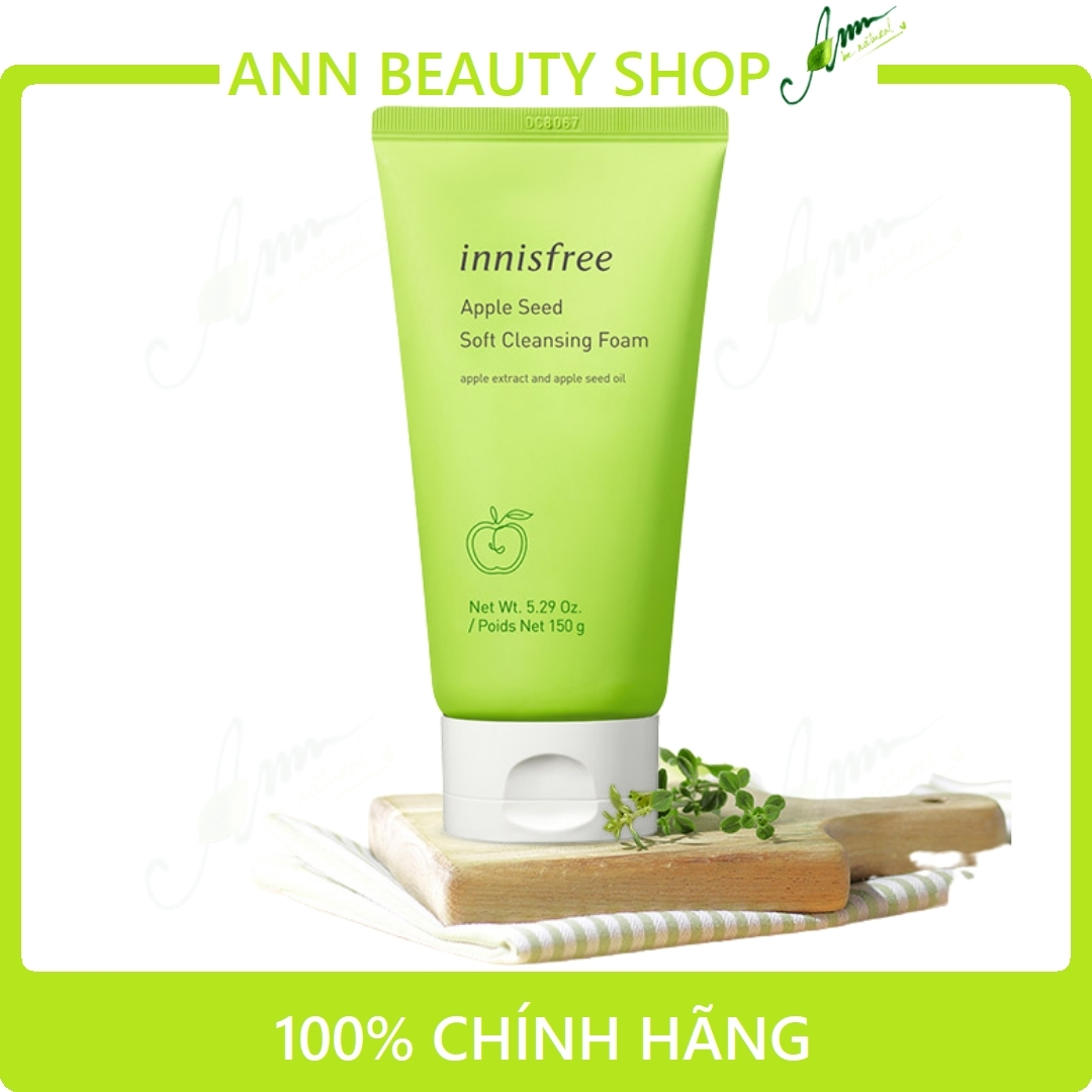 - Sữa Rửa Mặt Làm Sạch Sâu Innisfree Apple Seed Soft Cleansing Foam chứa chiết xuất quả táo và dầu hạt táo với nhiều dưỡng chất giúp làn da được sạch sâu, thông thoáng lỗ chân lông, củng cố hàng rào bảo vệ da, nuôi dưỡng làn da sáng khỏe, tươi mới