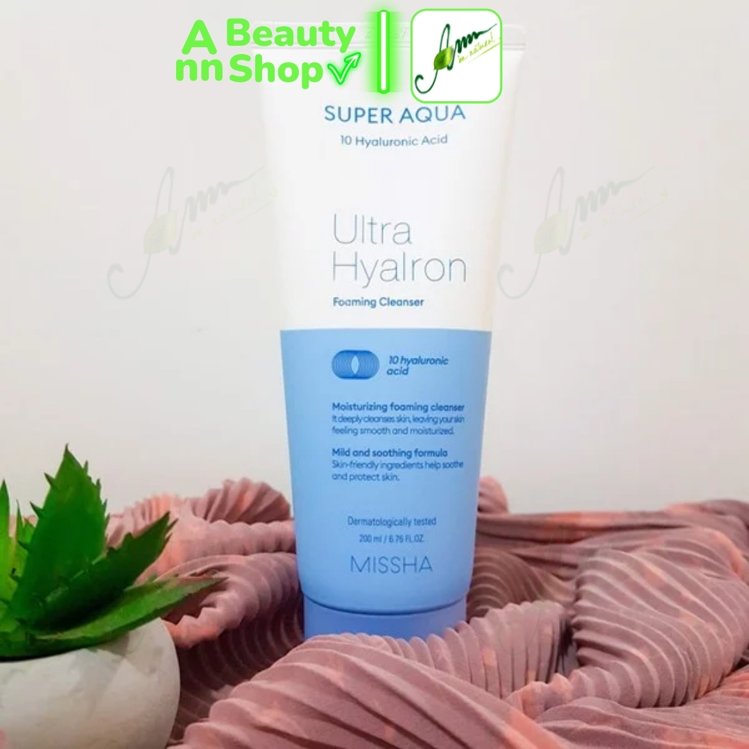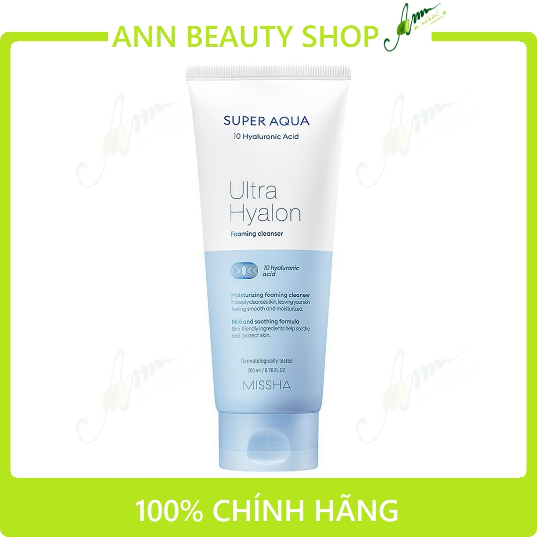 - Sữa rửa mặt làm sáng da Missha Super Aqua Ultra Hyalon Foaming Cleanser 200ml thuộc dòng mỹ phẩm thiên nhiên dịu nhẹ cho da của Missha, làm sạch bụi bẩn, bã nhờn với lượng bọt mịn giúp làn da trắng sáng mịn màng.