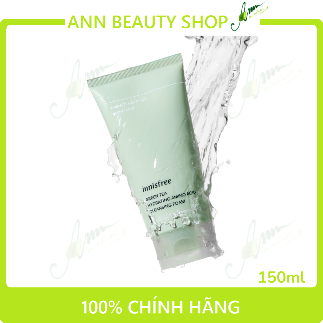- Được chiết xuất từ lá trà xanh thế hệ mới đặc biệt nghiên cứu bởi các chuyên gia của Innisfree sau khi thử nghiệm hơn 2401 mẫu trà, sữa rửa mặt Innisfree Green Tea Hydrating Amino Acid sẽ mang lại một làn da trẻ trung và sáng mịn. Bên trong sữa rửa mặt có các thành phần chống oxi hoá và kaolin giúp làm sạch bụi bẩn và các tạp chất trên da, hút nhờn bẩn và ngăn ngừa các dấu hiệu lão hóa.
