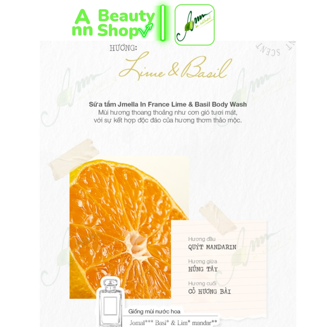 - Jmella có kế thừa và bộ sưu tập mùi hương trăm năm của riêng mình từ ARG.EVILLE ( Provence, Pháp), sử dụng các loại thành phần nhập khẩu cao cấp, chiết xuất các loại thực vật thiên nhiên, và có thành phần dưỡng ẩm tự nhiên, để bạn có thể tận hưởng nó mỗi ngày. Hàm lượng PH 5.5, sữa tắm có tính axit yếu hỗ trợ sức khỏe làn da