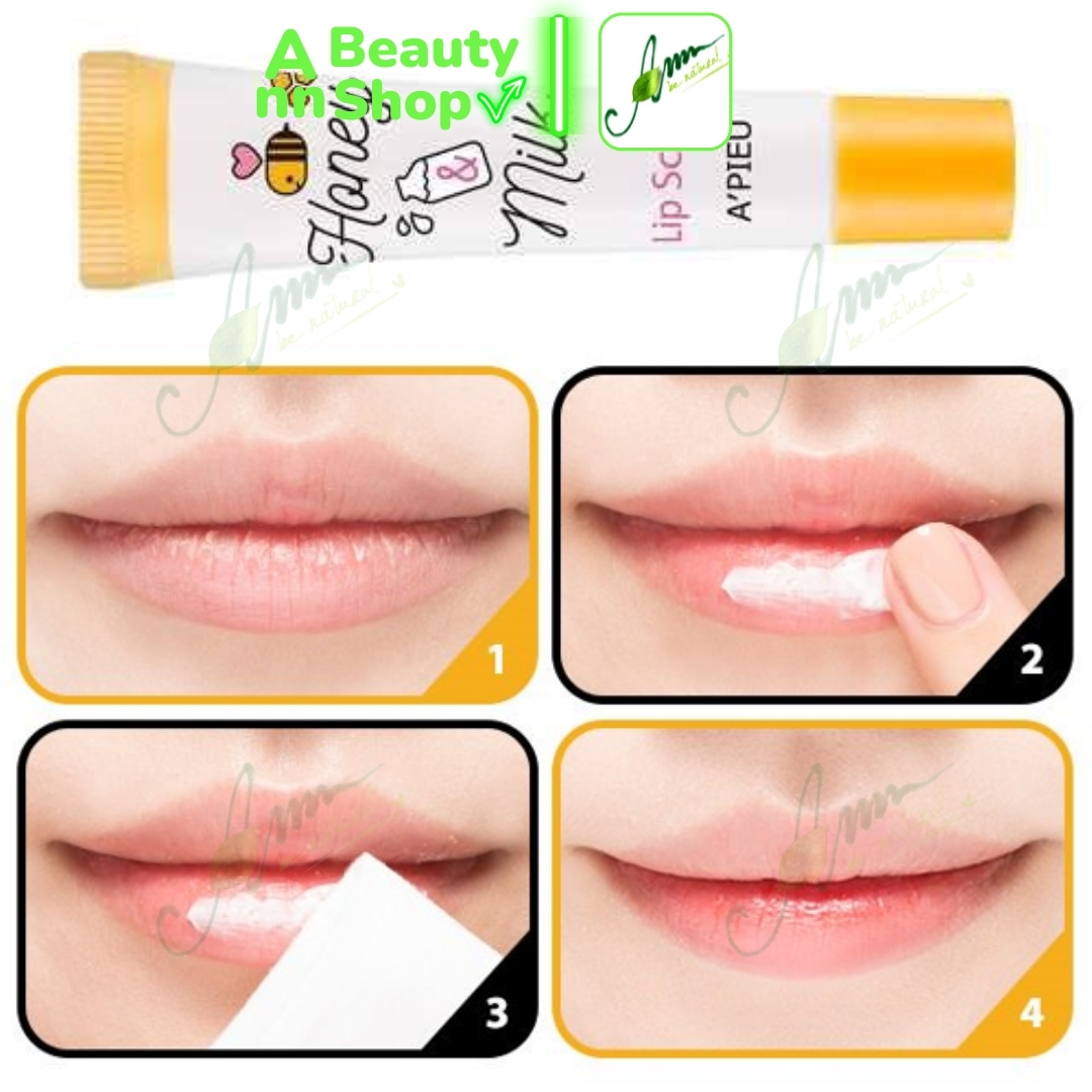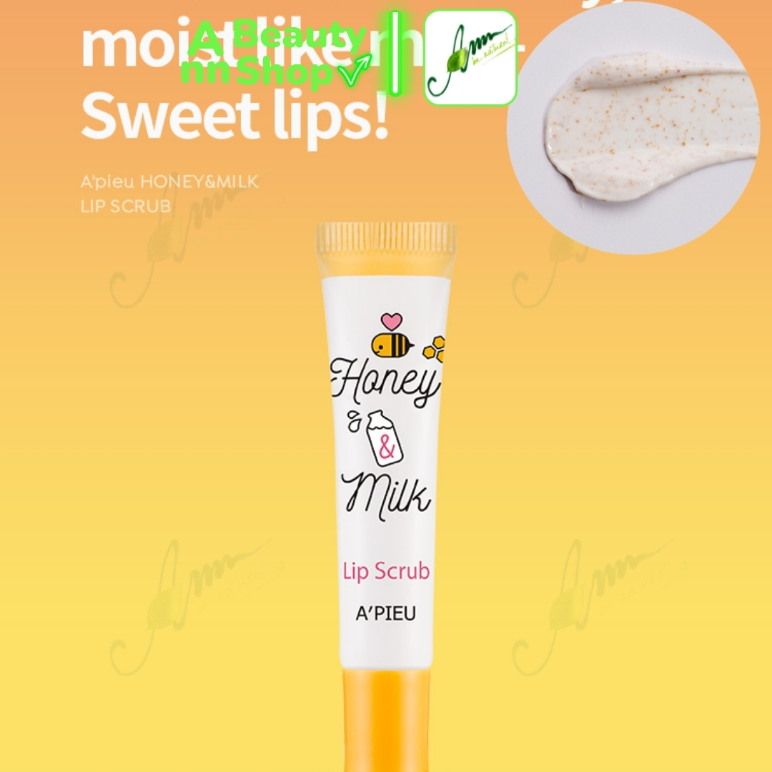 - Tẩy Tế Bào Chết Môi Honey & Milk Lip Scrub A’Pieu chiết xuất từ Mật Ong thiên nhiên và Sữa kết hợp với các hạt đường siêu mịn nhẹ nhàng lấy đi lớp tế bào chết, vết thâm trên môi.