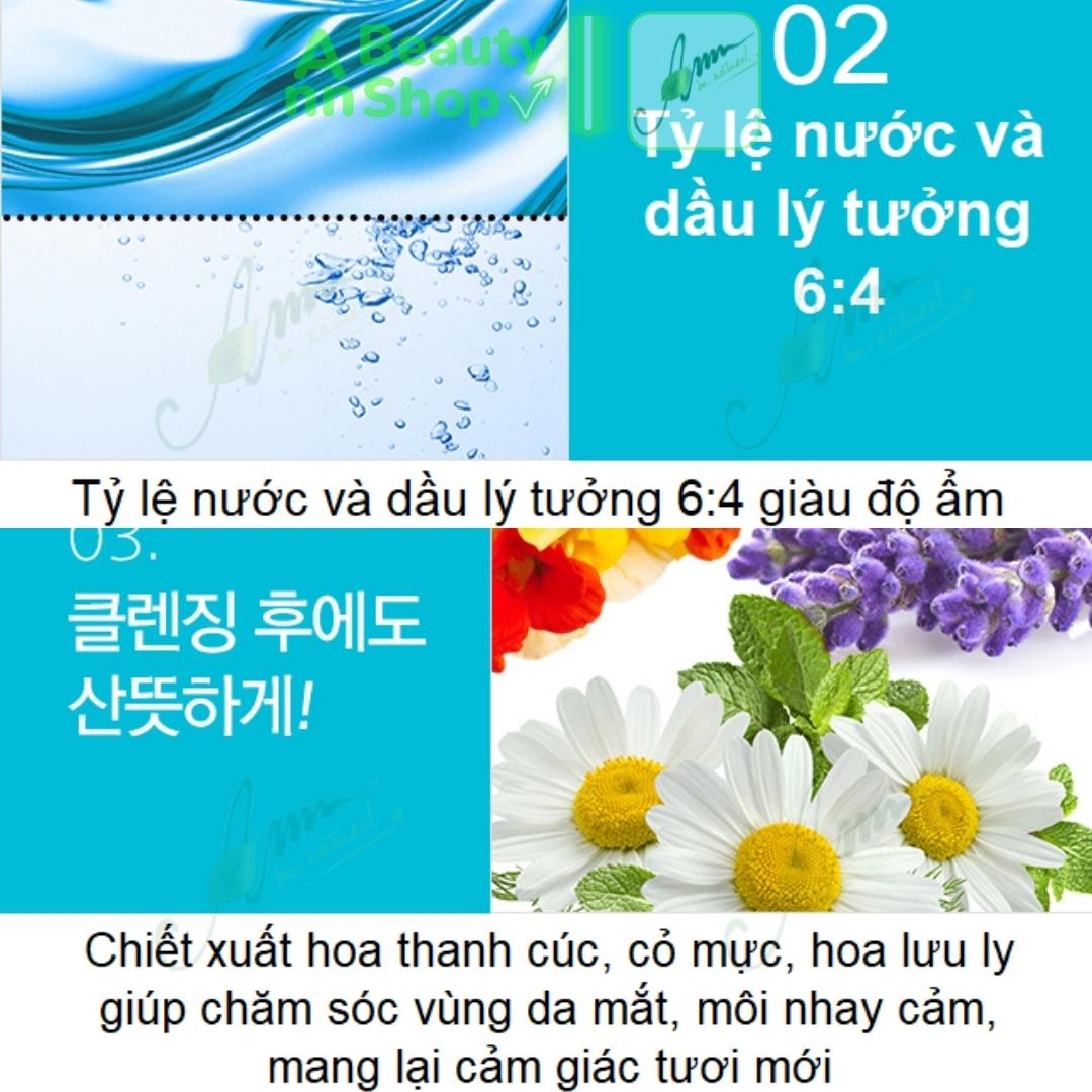 - Được chiết xuất từ hoa thanh cúc, hoa cỏ mực và hoa lưu ly chăm sóc cho vùng da nhạy cảm mắt và môi mang lại cảm giác tươi mới.