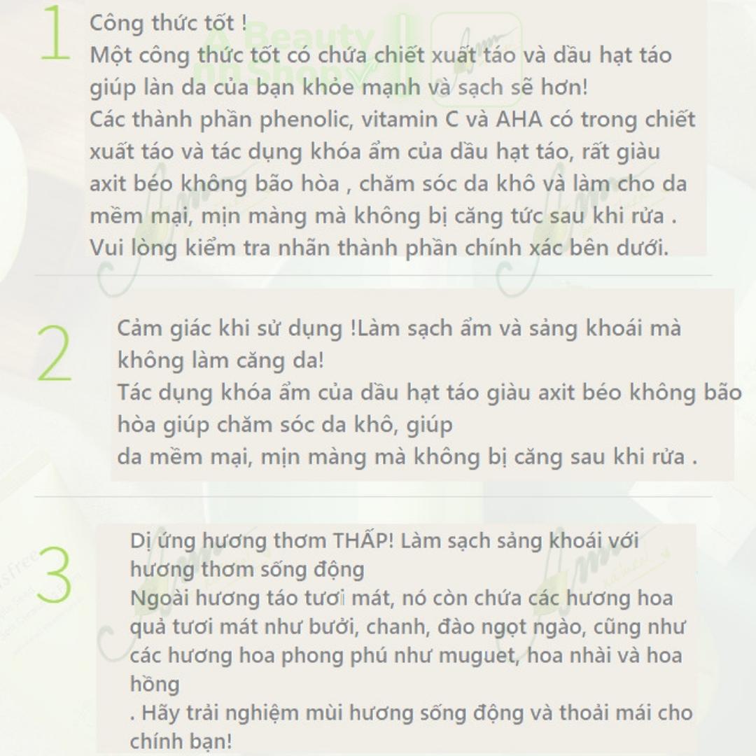 - Hương thơm táo nhẹ dịu thanh mát không gây cảm giác khó chịu.