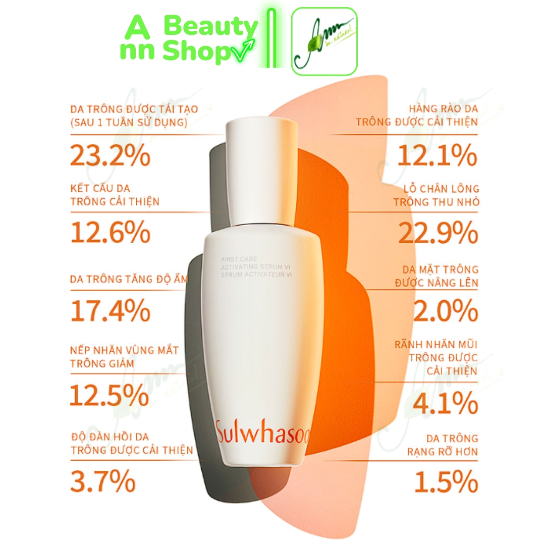 - Đây là thế hệ thứ 6: Sulwhasoo First Care Activating Serum, đã phát triển trong 26 năm qua quá trình nghiên cứu và thử nghiệm nghiêm ngặt, nay được tái sinh trở thành "thế hệ thứ 6" mới nhất với công thức và thiết kế được phát triển nhiều hơn nữa.