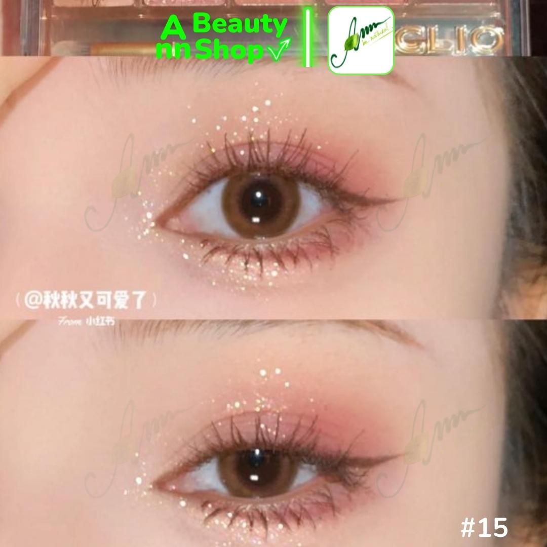 - Màu mắt dạng bột, dễ tán đều trên bề mặt da, tạo cảm giác mỏng nhẹ, đồng thời có độ bám dính tốt, các hạt kim tuyến không bị rơi rớt xung quanh.