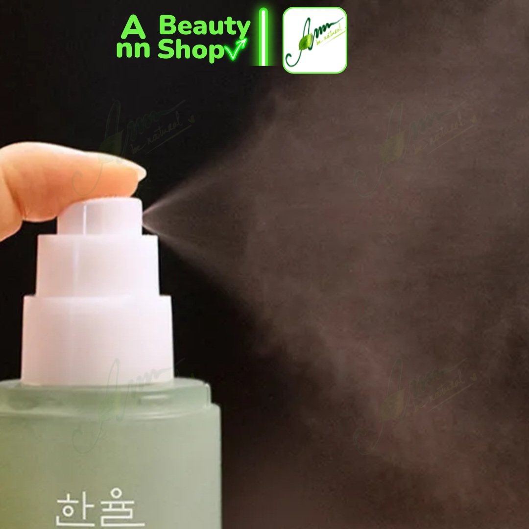 - Đặt chai xịt khoáng Hanyul Pure Artemisia Fresh Calming Water cách da tầm 20cm xịt đều khắp mặt.
